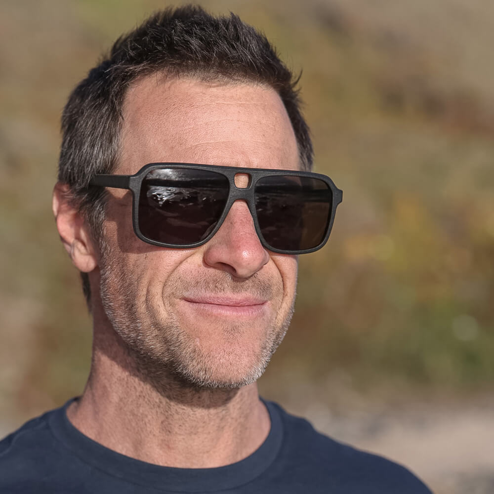 The Haven is a bold, old-school men’s style with a large square front and distinctive bridge cutout. With thin arms this large style has a light fit.